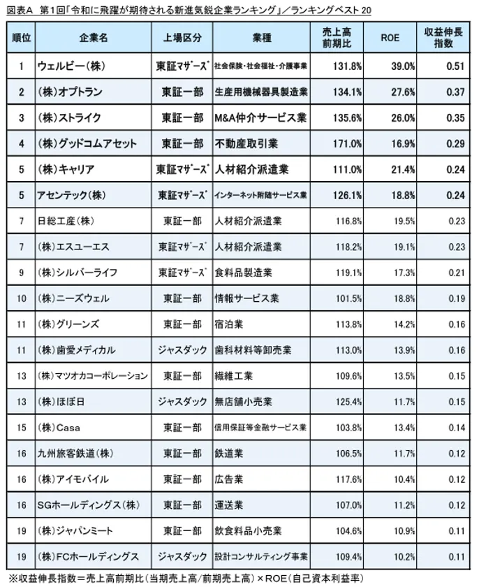第1回「令和に飛躍が期待される新進気鋭企業ランキング」調査 新興上場企業の成長度は全上場企業を上回る勢い!(動画あり)