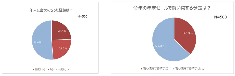 出費の多い年末 金欠経験者は約半数! 年末商戦到来!セールで買い物する予定の人は4割近く