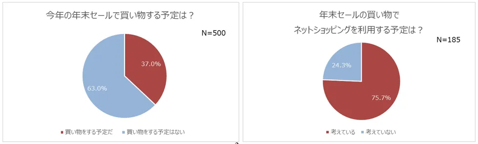3.今年の年末セールで買い物する予定の人は約4割(37.0%)。うち、約8割の人はネットショッピングを利用する予定(75.7%)
