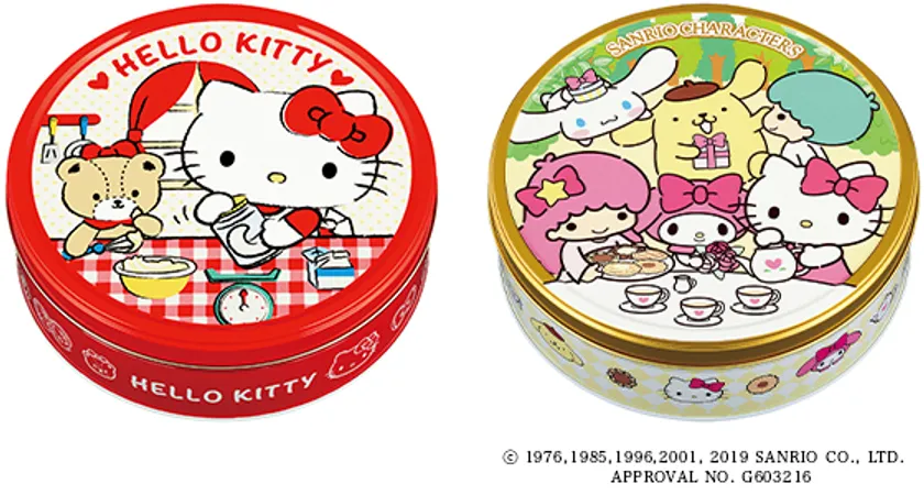 左:バタークッキー缶(ハローキティ)、右:トルテクッキー缶(サンリオキャラクターズ)