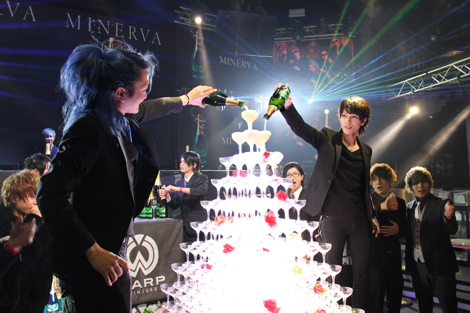 ボジョレーヌーヴォー解禁日でお馴染みの11月21日の前日にワープ新宿にて光るシャンパン『Minerva』のJAPANアンバサダーに就任した「レペゼン地球」と3日で1億円の売り上げを叩き出した歌舞伎町の伝説ホストである「愛夢路澪」が『Minerva』の解禁を祝いました。