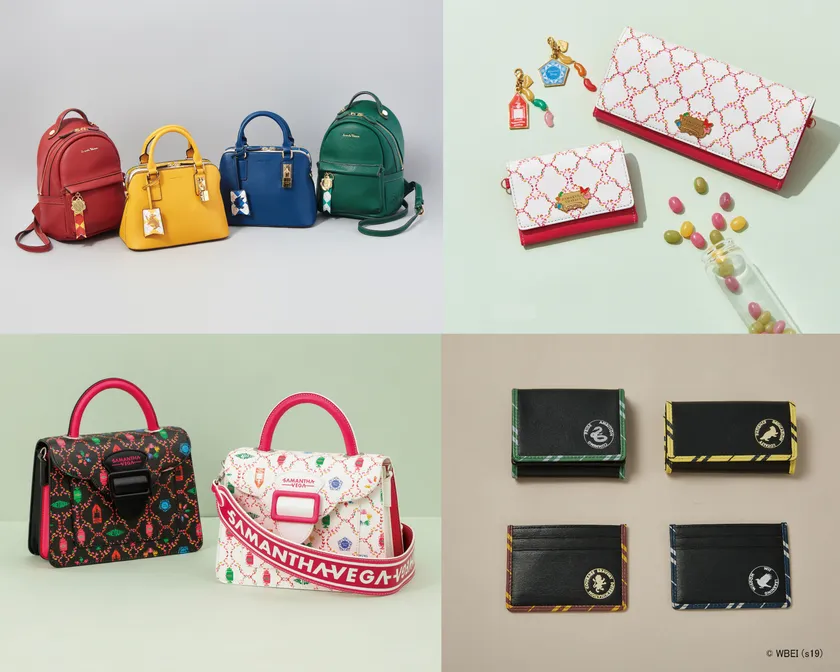 「サマンサタバサ」からは4つの寮をイメージしたカラーのミニショルダー&ミニリュックを展開。また、ハリーに送られたホグワーツへの入学許可証をデザインしたトートバッグやお財布が登場。「サマンサベガ」からは寮のシンボルがデザインされたスクエアショルダーバッグが。前回も大人気だったレザー小物ブランド「サマンサタバサプチチョイス」からはエンブレムマークのプレートがアクセントになったお財布小物やショルダーバッグを展開。