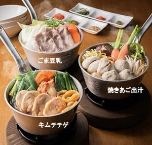 「焼きあご出汁」・「ごま豆乳」・「キムチチゲ」