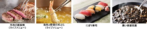 注文を受けてからご用意するので、温かいお料理は“出来たて”をお愉しみいただけます。メインディッシュの他、さまざまな料理を何度でもお席までお届けいたします。
