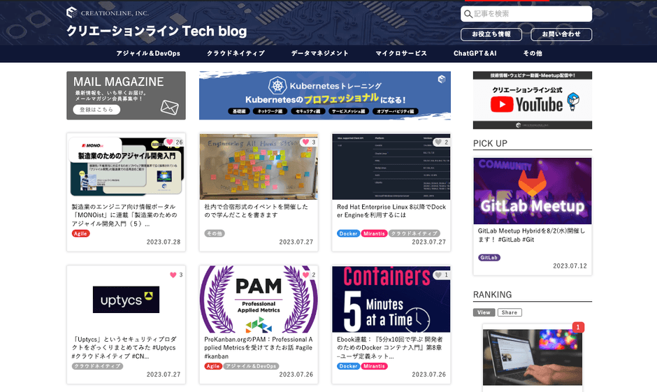 急速に進化するテクノロジーがビジネスに与える影響は大きく、多くの企業が最新の技術動向を注視しています。以前よりクリエーションラインはITの知識を有するプロフェッショナル集団として情報発信をしてまいりましたが、今後はさらにフォーカスを絞り、重要度がさらに高まっているアジャイル&DevOps、クラウドネイティブ、データマネジメント、マイクロサービス、ChatGPT&AI等の分野での最新トピック / トレンド情報 / ベストプラクティス等の情報提供を強化していく考えです。