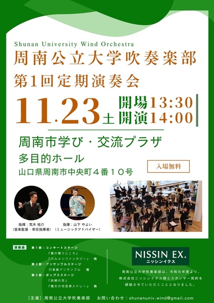 【山口県周南市】周南公立大学吹奏楽部 第1回定期演奏会を開催します