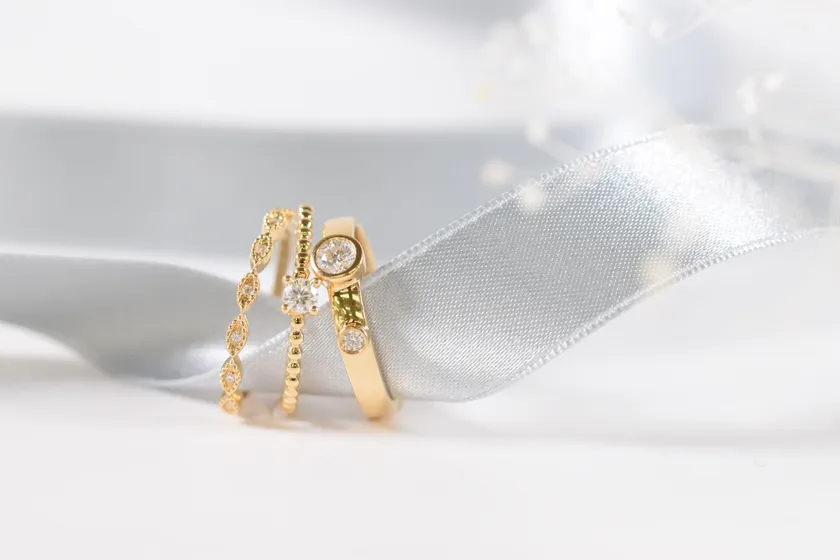 リングは、ピンキーリングにもぴったりな華奢なデザインや、モアサナイトが付かないシンプルなリングもラインナップ。一つ使いはもちろん、重ね付けしてレイヤードを楽しむのもおすすめ。モダンな雰囲気のリングピアスは、縁を彩ったモアサナイトが繊細に輝き上品さもアップします。