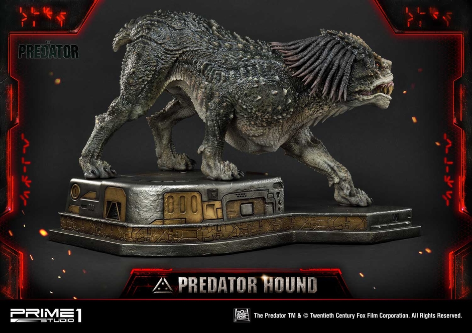 犬とプレデターの遺伝子を掛け合わせて作られたような獰猛な狩猟犬としてデザインされたプレデターハウンドの皮膚表現、そしてクリーチャーらしい頭部の造形など忠実に再現。プレデターの宇宙船内部をイメージした専用ベースが付属。