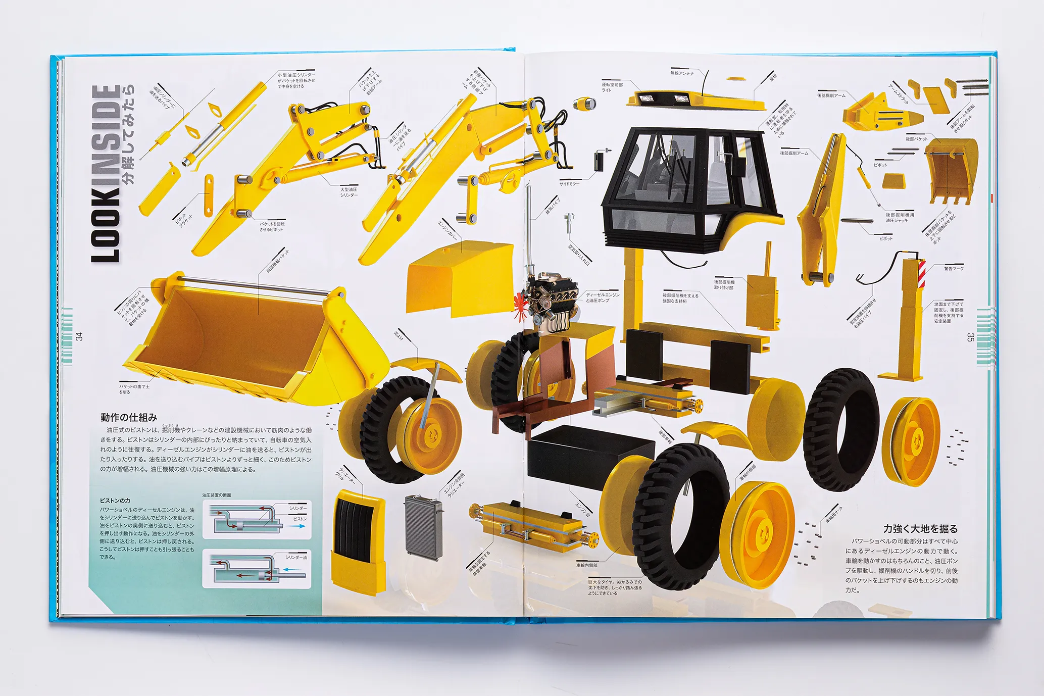 いろいろな機械の仕組みをご覧いただきます。さらに、180度に開くことができて置いたままでも読みやすい作りになっています。子どもから大人まで、すべての人が見て楽しめる保存版分解図鑑です。