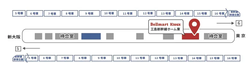 三島駅新幹線ホーム14号車(東京方)付近に 「ベルマートキヨスク」がリニューアルオープン!