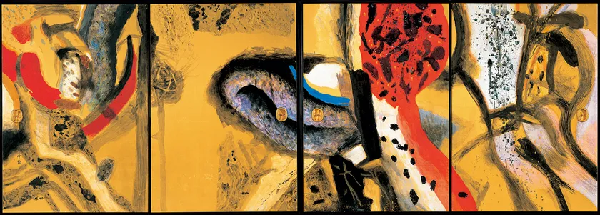 本展では、寺院の襖絵としてはじめて抽象によって描かれた高知・五台山竹林寺の襖絵をはじめ、初期から晩年の代表作まで全58点(襖絵は展示替あり)を展示します。印象のクリエイションパワー全開の作品の数々をお楽しみください。