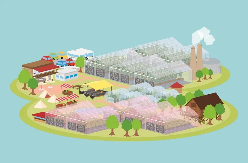 【施設】トマト生産ハウス、レストラン・カフェ、マルシェ、