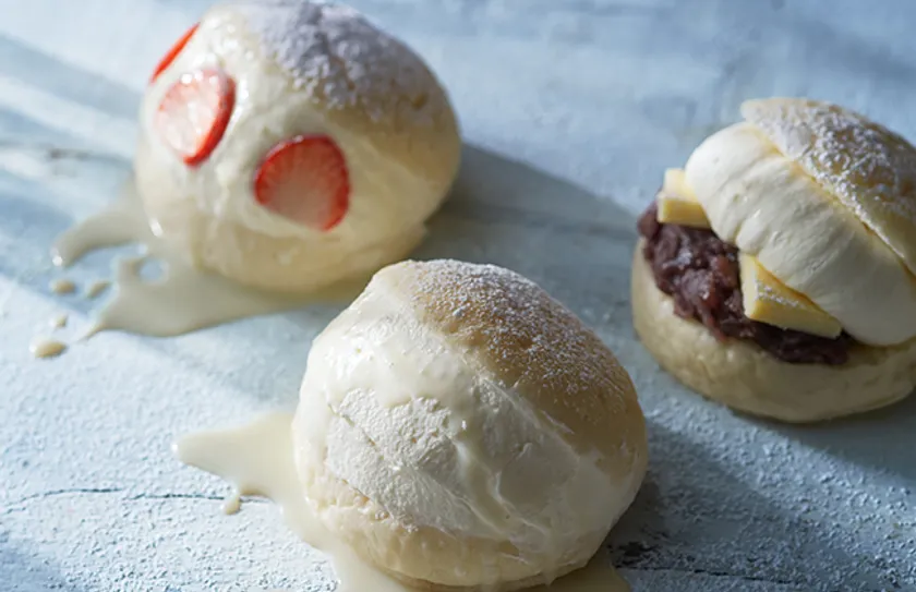 そこで、私たちは生クリームをたっぷりはさんだ“バーガー”を考えました。北海道産生クリームには、隠し味にマスカルポーネチーズを加え十勝のジャージーミルクで作った、濃厚なミルクジャムをサンド。こだわったのは、生クリームとパンの出会い方。生クリームの口どけを邪魔しない、口どけのよい、しっとりなめらか食感のパン。ぜひ大きな口で、ガブリと召し上がれ。他にも、新登場の2種もお楽しみください。