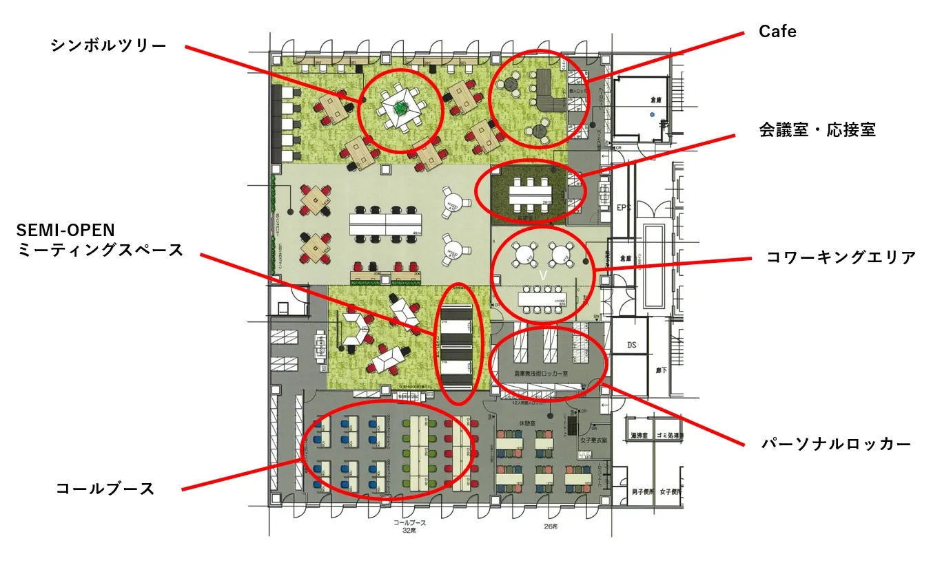 各拠点の中心に「シンボルツリー」(*全拠点に設置)を配置。フロアの中心から社員を見守ります。