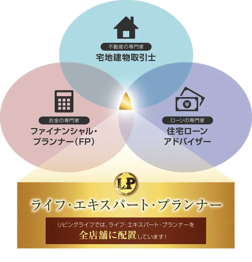 株式会社リビングライフは売買仲介を専門に扱う全店舗に「ライフ・エキスパート・プランナー」を配置し、初めて住宅を購入する方の様々な疑問やご要望にお応えします。