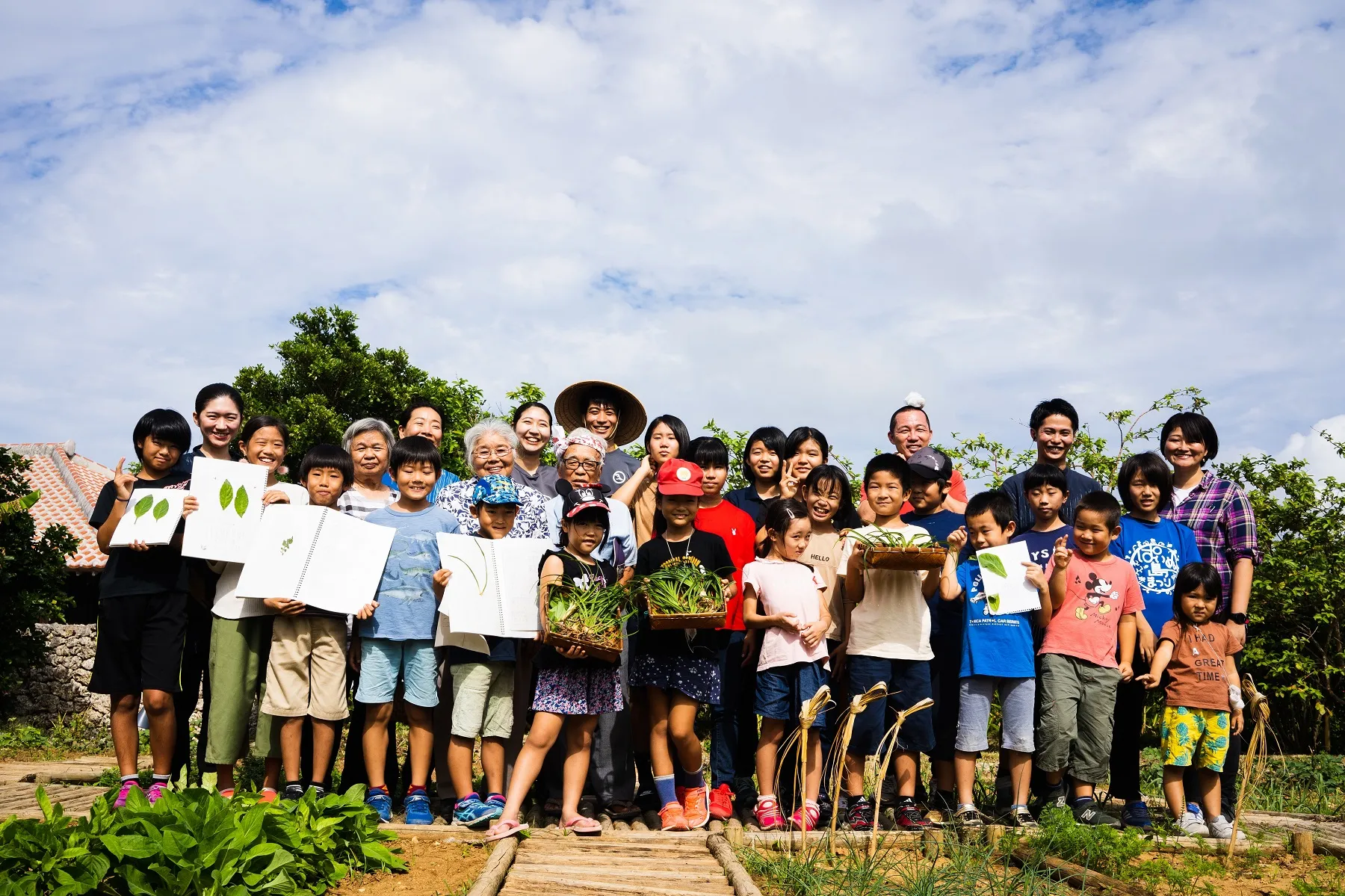 6月29日に子どもたちと施設内の畑へ植え付けた命草である、クミスクチン、ニガナ、パン草、ヨモギ、ハンダマを収穫しました。参加した子どもたちは、竹富島に住む小中学生19名です。