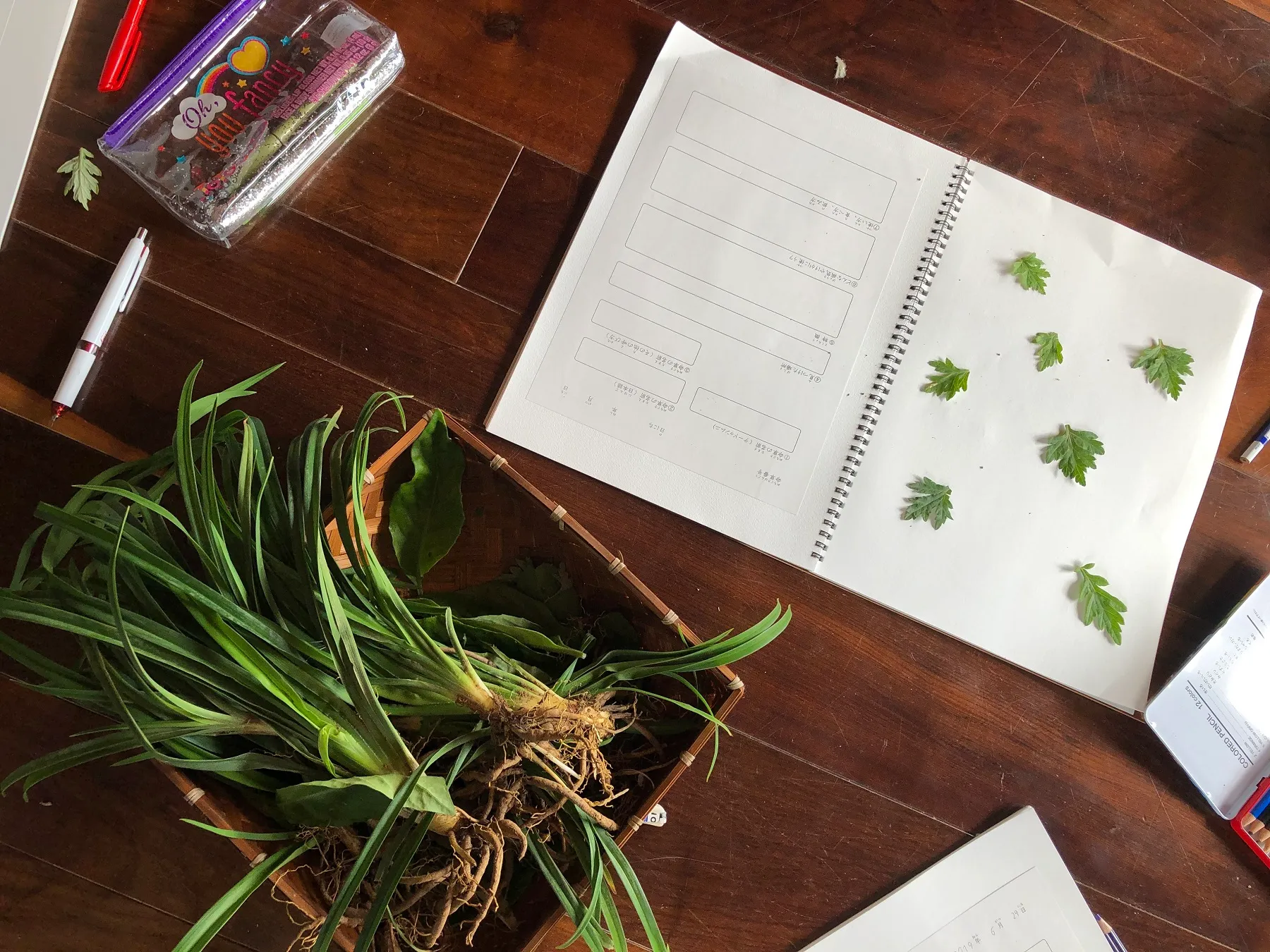 命草の植え付けを行った6月29日より、子どもたちが楽しみながら命草について学ぶために命草ノートを1人1人に準備しています。当日収穫した命草をノートに張り付けたり、当日教わった新しい命草の使い方を記入したり、自分だけのオリジナルの命草ノートを一生懸命作っていました。ノート作りを通して、自分たちから進んで命草について学んでもらうことを目指しています。