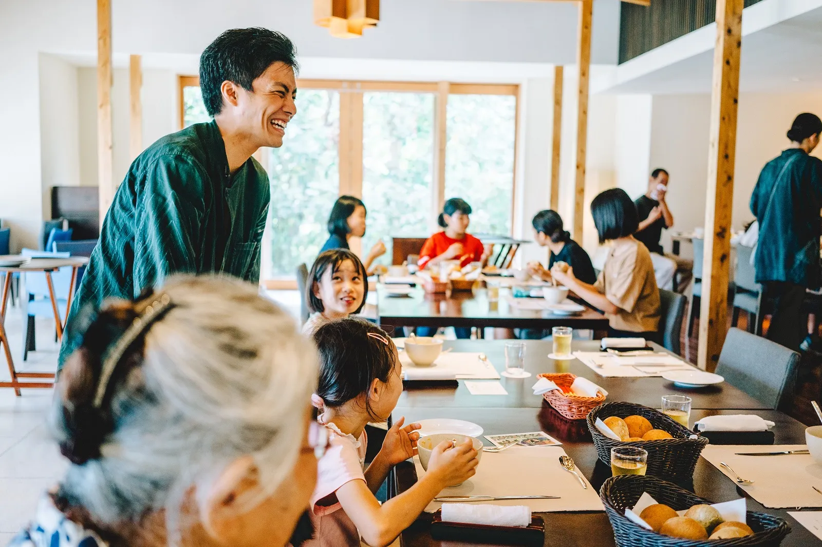 収穫を終えた後、子どもたちとお世話になっている島の方々をダイニングに招待し、命草を使用したランチを振舞いました。星のや竹富島のシェフオリジナルの命草の料理を食べ、命草をより身近に感じ興味を持ってもらうことが目的です。