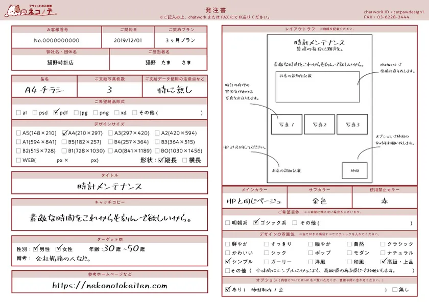 「ネコノテ」は、案件の発注から納品まで全てオンライン上で完結する定額デザインサービスです。