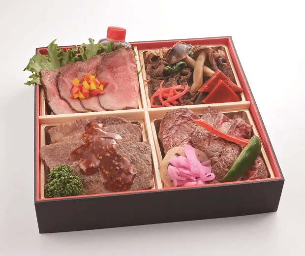 きめ細やかな赤身と、良質な脂がのった柔らかなお肉を一度に食べ比べることが出来る贅沢なお弁当です。