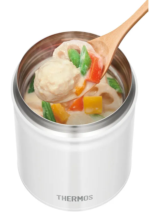 ステンレス製魔法びん構造で温かいものを温かいまま。食べ頃温度をキープ!