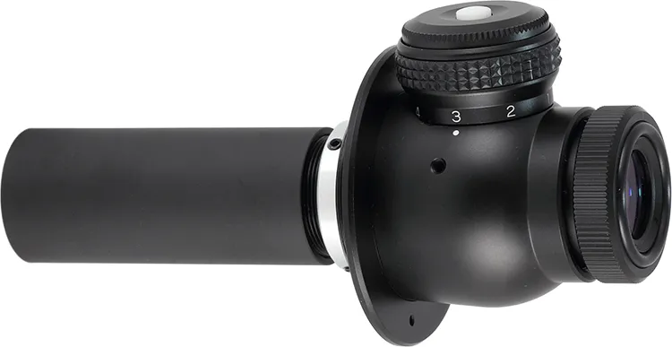 北極星を導入する素通しファインダー(着脱式)を付属していますので、手軽に極軸を合わせることができます。高精度な極軸合わせを必要としない、広角レンズなどを使う撮影の際に便利です。アクセサリーシューに取付けて使用します。