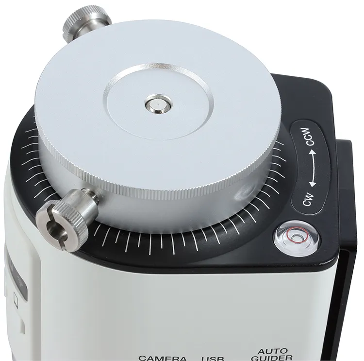ポラリエUを水平に配置する際の水平出しに使用できる水準器を装備しています。またタイムラプス撮影時のおよその回転角を確認できる5度間隔の目盛を装備しています。