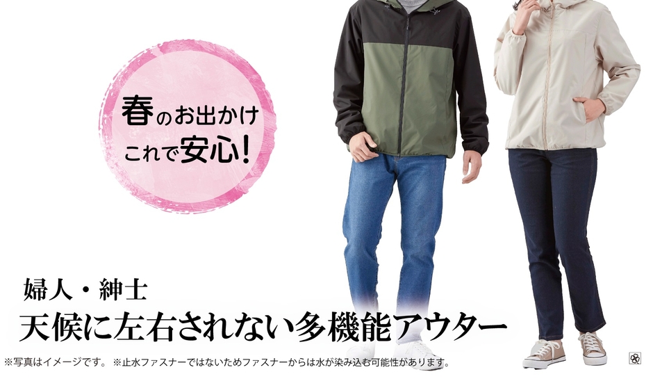 3月に入り、ぽかぽかと少しずつ春の訪れを感じる季節になりました。日中は暖かくても、朝晩の寒暖差や突然の悪天候に悩まされる今の時期に頼もしい新商品が誕生いたしました。「天候に左右されない多機能アウター」は、大雨・風・花粉から身体を守る高機能生地を使用した、春を満喫するのにぴったりなアウターです。通勤・通学やスポーツシーンでも活躍するスタイリッシュで動きやすいデザインで、豊富なカラーバリエーションをご用意いたしました。