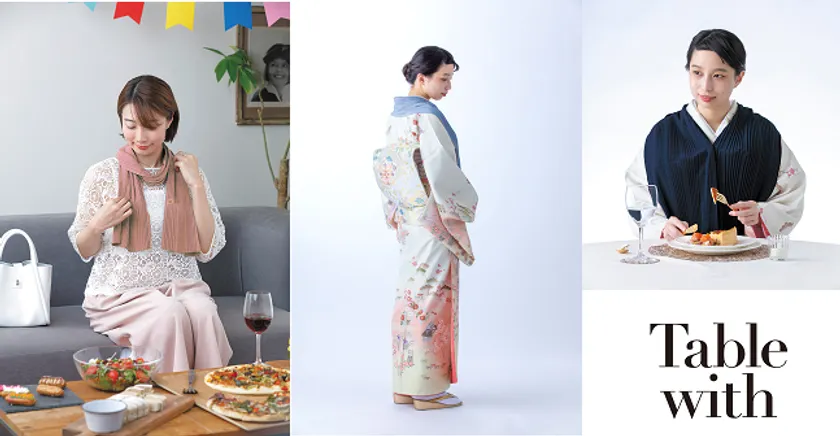 毎日お洋服を選ぶように、Table withもファッションアイテムとしてお洋服とのコーディネートを楽しんで頂きたいという想いで発売いたしました。落ち着いた無地のカラーと上品なプリーツは衣類に馴染むデザインで、普段の洋服やお着物両方に使え、旅行での食事、お着物での観劇など、一枚持っているだけで幅広いシーンでお使いいただけます。