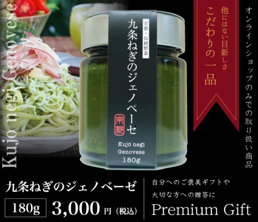 京都で九条ねぎの生産・加工・販売を行う農業生産法人 こと京都株式会社(本社:京都市伏見区、代表取締役:山田 敏之、以下 こと京都)は「九条ねぎ」の可能性をより身近に感じていただきたいという思いから、「九条ねぎ」と厳選した素材から作られた新商品「九条ねぎのジェノベーゼ」を2019年11月25日(月)よりオンラインショップにて販売を開始しました。