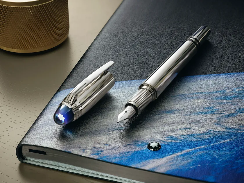 モダンなストリームデザインの筆記具「スターウォーカー」。2019年の新作は、宇宙から見た青い地球の美しさを讃えるコレクションです。キャップトップの透明ドームにグラデーションのブルーは、月から見た地球の地平線をモチーフにしています。多忙な日々を送る人に、生命が満ち溢れる地球の大切さや美しさ、そして宇宙の雄大さを毎日感じてもらいたい…と言う贈る人のメッセージを伝えます。