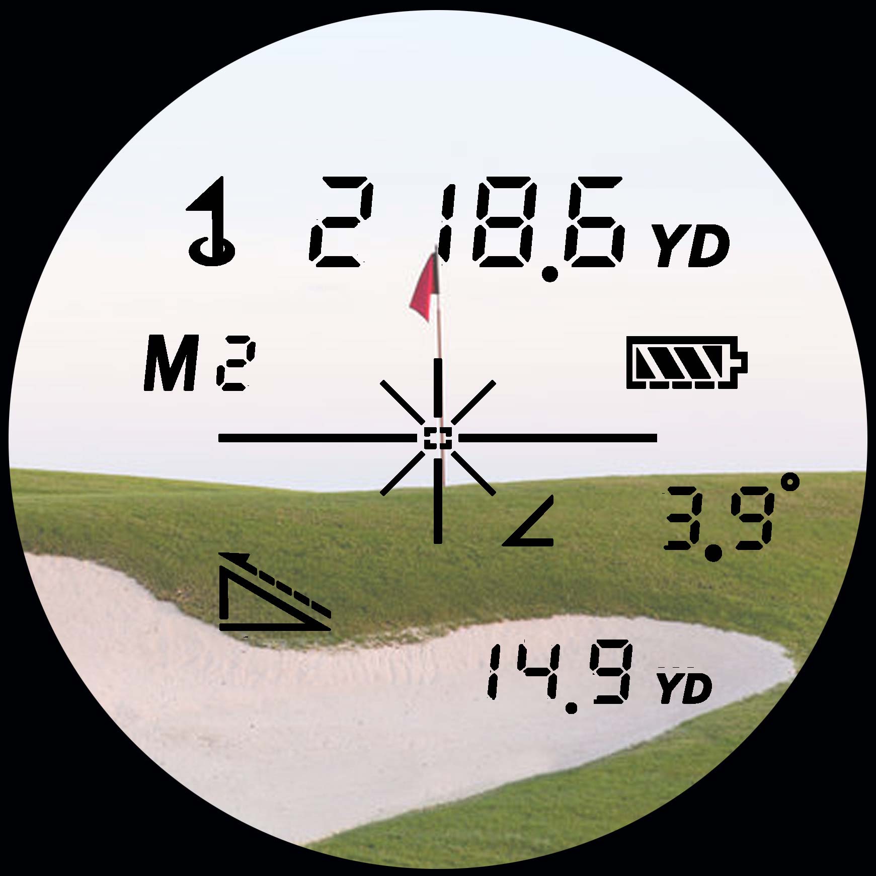 測定精度 : 距離±0.5ヤード以内(250ヤード/m未満) 0.2%(250ヤード/m以上)
