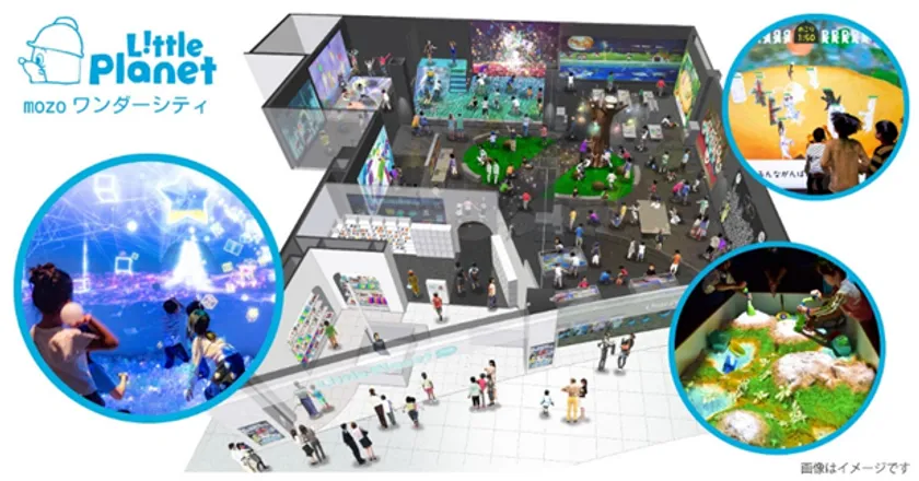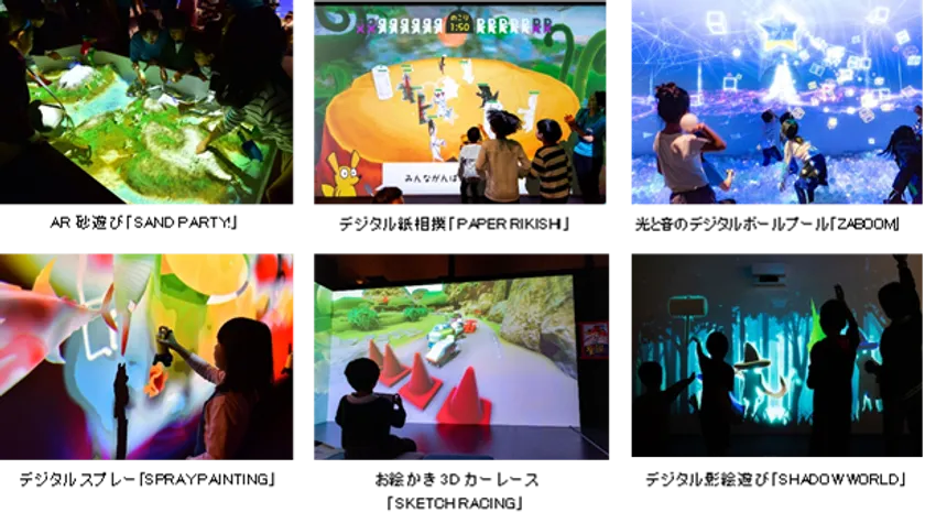 「リトルプラネット mozoワンダーシティ」では、AR砂遊び「SAND PARTY!」やデジタル紙相撲「PAPER RIKISHI」、プロジェクションマッピングを使った光と音のボールプール「ZABOOM」など、昔ながらの遊びに最新デジタル技術が融合した15種のアトラクションが大集合します。
