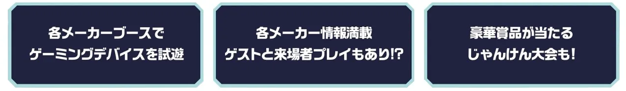 各出展メーカー様のブースでは、最新のゲーミングデバイスを使用したゲームプレイをじっくりと体験することができますので、自分に合ったゲーミングデバイスを探すのにも最適です。参加費用は無料ですので、ぜひ会場にてお楽しみください。