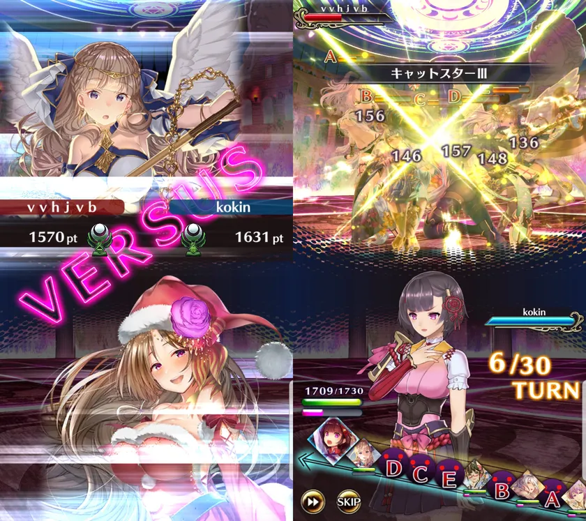 お気に入りの女神でデッキを組んで他のユーザーとの1対1のバトルを楽しむことができます。
