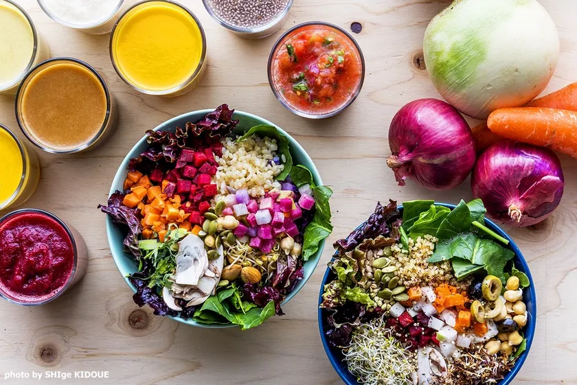 1ボウル分のサラダを自由に盛り付けできます。アボカド&ノンビーガントッピングは+250円