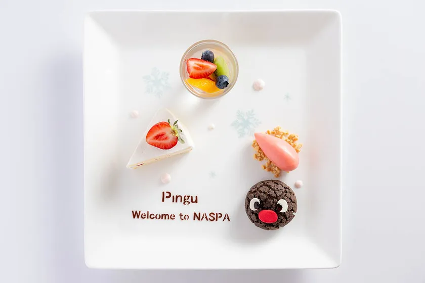 ピングー宿泊ルームご利用の方限定で、ウェルカムパンケーキとお食事時にデザートをご用意します。