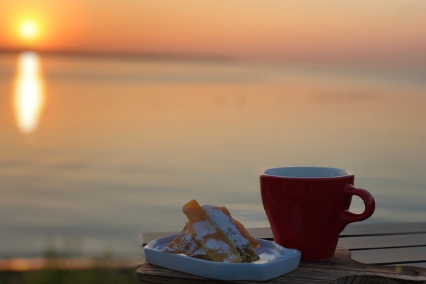 星野リゾート初の自転車を楽しむホテル「星野リゾート BEB5土浦」は、朝焼けを見に行くアクティビティ「朝焼け絶景サイクリング」を販売開始します。朝焼けのグラデーションが湖面に映り、その様子は地元の方にも愛される絶景!日の出前の薄暗い時間に自転車を走らせ、到着した先で段々と明るくなり、空の様子が変わっていく景色を眺められるアクティビティです。絶景のおともとして、茨城で親しまれている干し芋とコーヒーを用意しました。いつもとは、ひと味違う素敵な朝の時間を過ごせます。