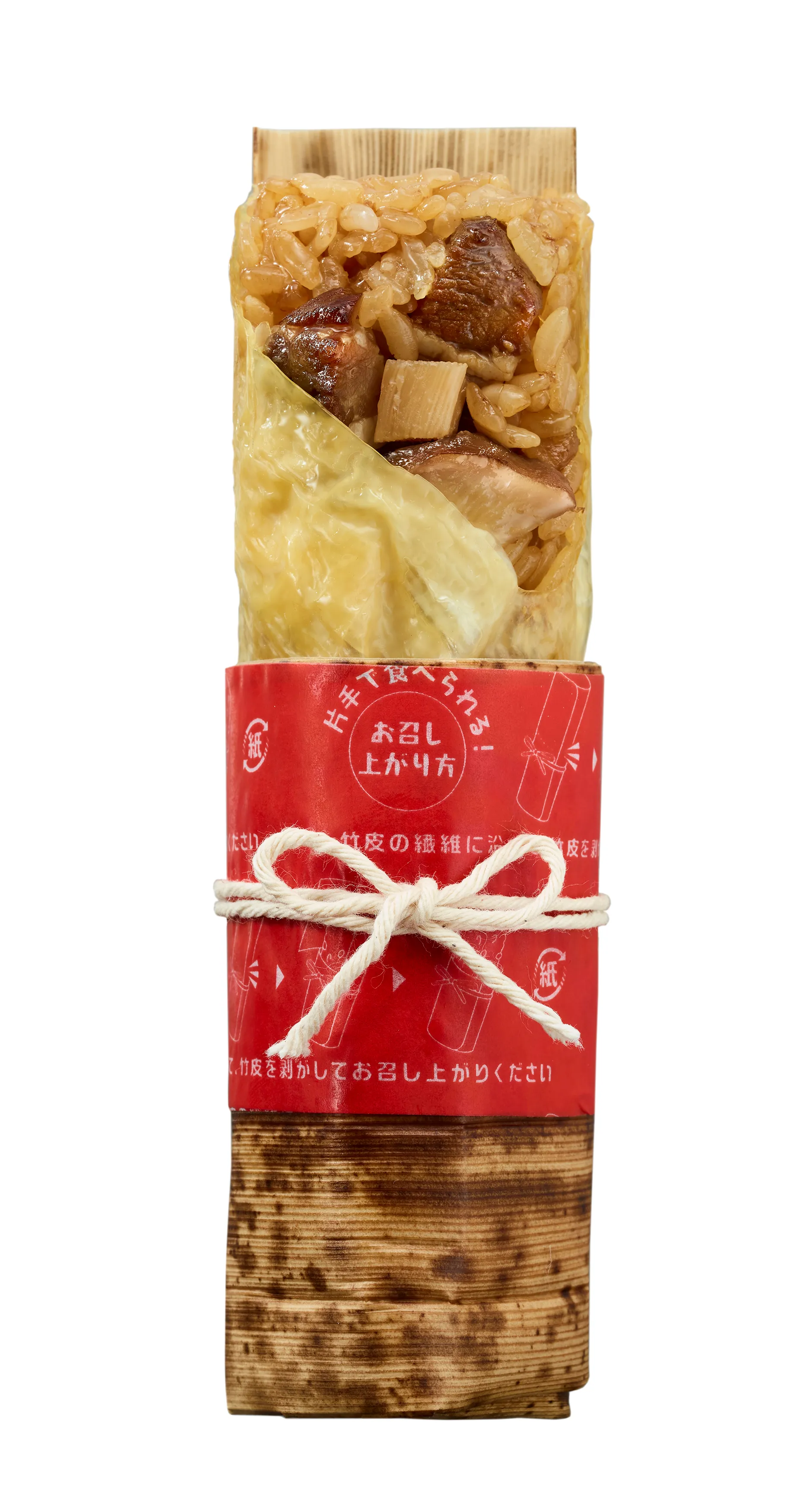 大きくカットした鶏肉と豚肉をじっくり煮込み、旨みたっぷりの煮汁を染み込ませたもち米ともちもちの食感が特長です。
