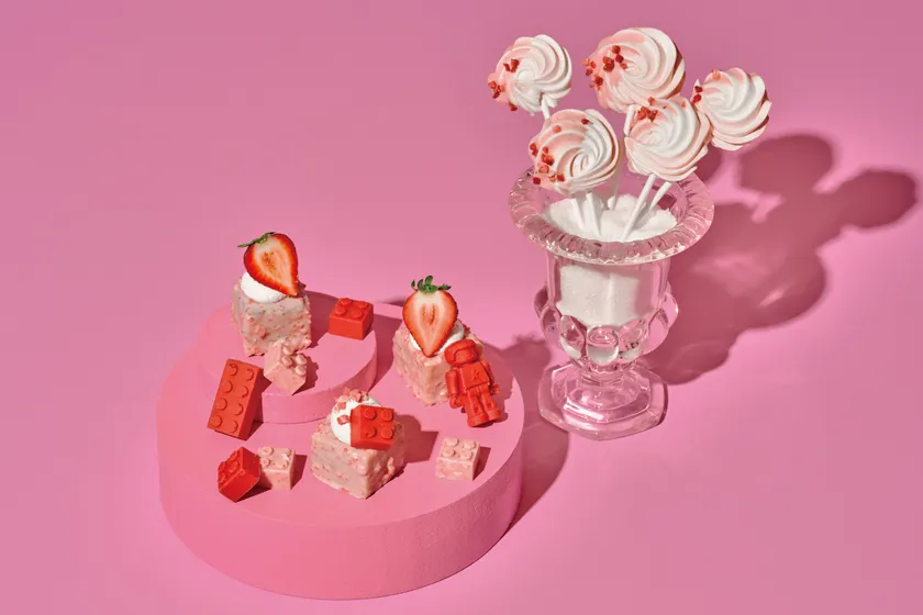 スイーツももちろん遊び心たっぷり。「Very Berryクリームケーキ」は、ハート型のケーキをカットすると、溢れんばかりのストロベリーとハート型のチョコレートが、中からこぼれ落ちてくる、びっくり箱のような仕掛けが楽しい一品です。ロボットのチョコレートが添えられた「ベリーブラウニー・トイズ」は、まさにおもちゃの世界から出てきたようなキュートさです。「MELTY or NOT ムースケーキ」には、溶けかけのアイスクリームをイメージしたバニラムースとコーンをトッピング。ファンタジーな世界観を表現した遊び心溢れるムースケーキです。