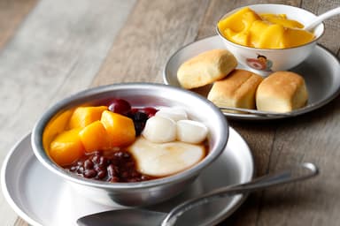 近年日本で人気の台湾スイーツも登場。つるんとした食感と優しい甘さがクセになる『自家製豆花』はゆで小豆やフルーツなどをたっぷりのせて。さらに、定番の『パイナップルケーキ』や『マンゴープリン』も揃います。