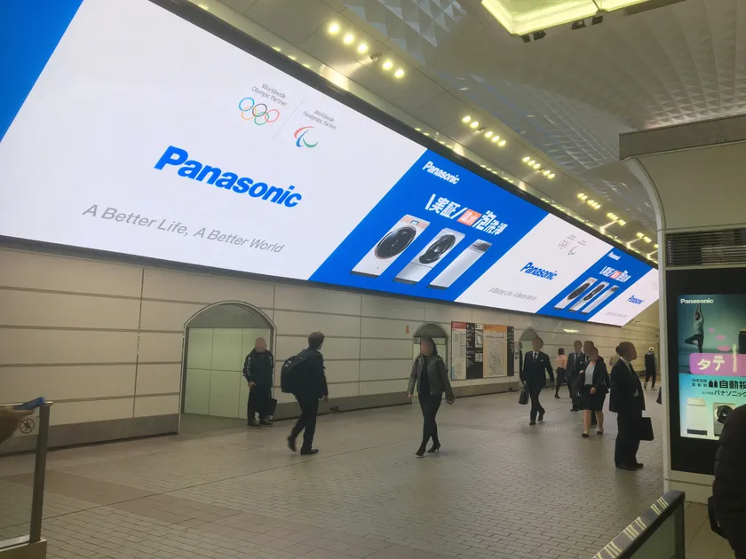 ※2 梅田駅上りホームに12面、65インチディスプレーの縦型デジタルサイネージを設置し放映中