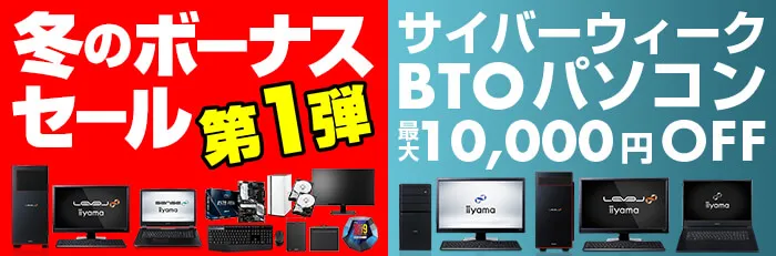 パソコン工房Webサイトでは、現在開催中の『冬のボーナスセール第1弾』に加え、スポットセールとして『サイバーウィーク』を開催いたします。