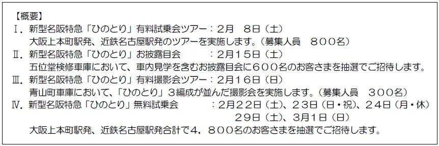 2020年3月14日の運行開始に先立ち、一般のお客さまを対象とした 新型名阪特急「ひのとり」の試乗会、お披露目会、撮影会ツアーを実施します!