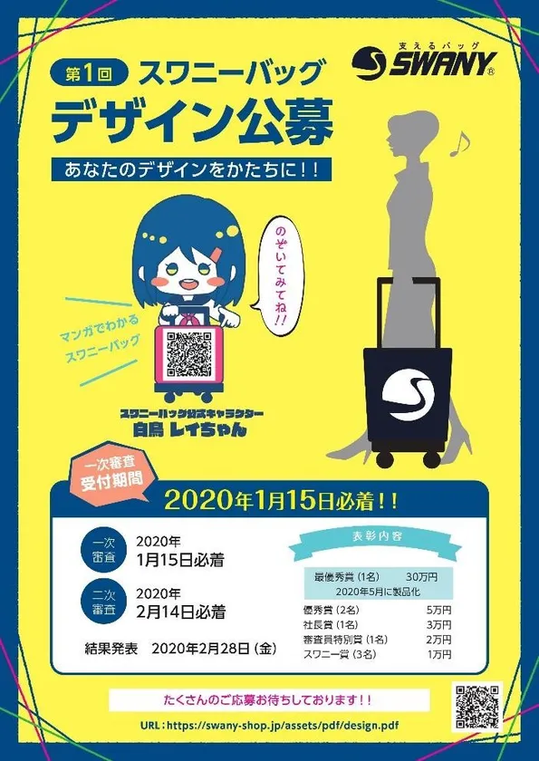 [一次審査] 自由な発想によるスワニーバッグデザインを募集。