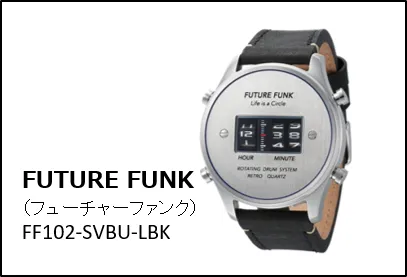 1970年代に業界人に魅了されたローラー式腕時計が、現代の最新技術によりFUTURE FUNKとして蘇りました。ローラーを縦に回転させることによって時刻を表示することができる、クォーツ時計としては画期的なムーブメントを内蔵した腕時計です。時計の技術者の復刻の夢を叶えた一品です。70’テイストをお楽しみください。