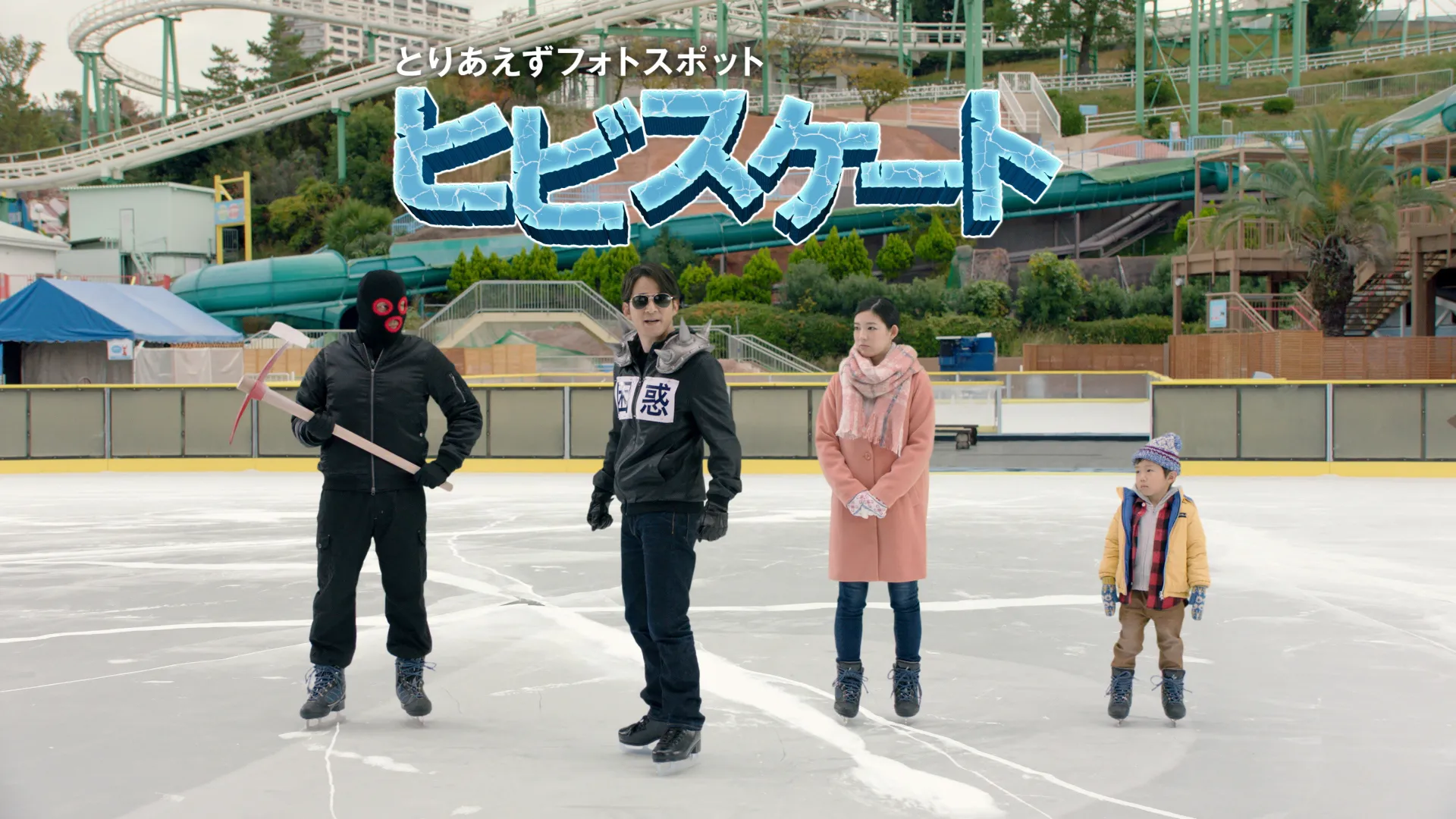 新CM「誰や」篇で登場するヒビが入ったスケートリンクと一緒に写真撮影ができるフォトスポットを、2019年12月9日(月)~2020年3月1日(日)の期間限定でスノーエリア内に設置。足で踏みつける、拳をぶつける、ペアで写真を撮る、フィギュアスケート風に撮るなど、ご自由に写真撮影をお楽しみいただけます。