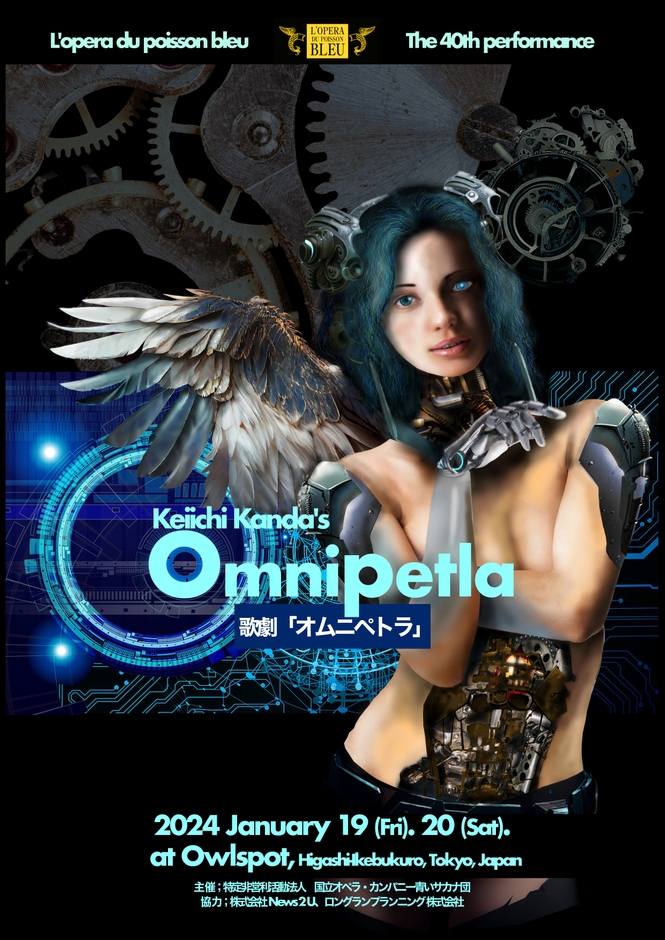 NPO法人 国立オペラ・カンパニー青いサカナ団(代表:神田慶一)主催、歌劇『オムニペトラ』が2024年1月19日 (金) ~2024年1月20日 (土)にあうるすぽっと(東京都豊島区東池袋4-5-2ライズアリ-ナビル2F)にて上演されます。