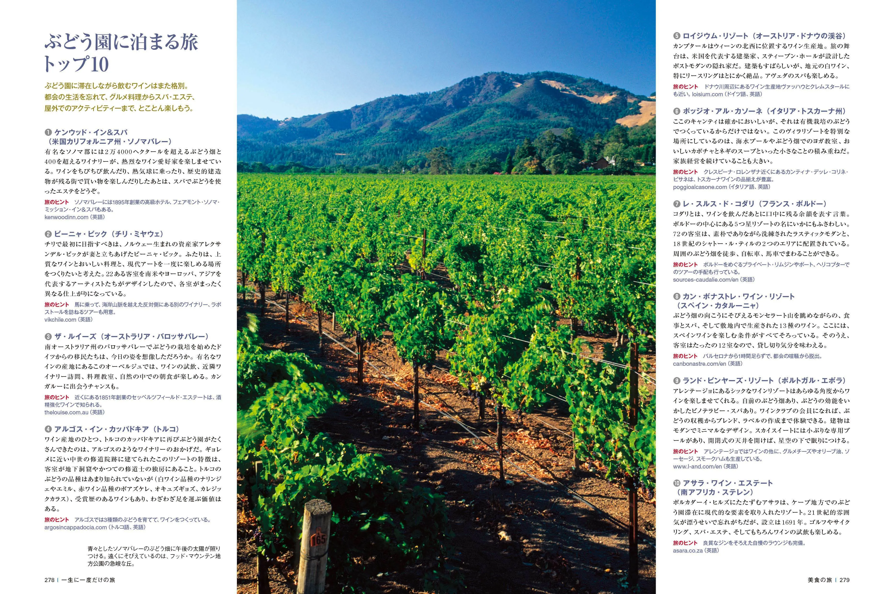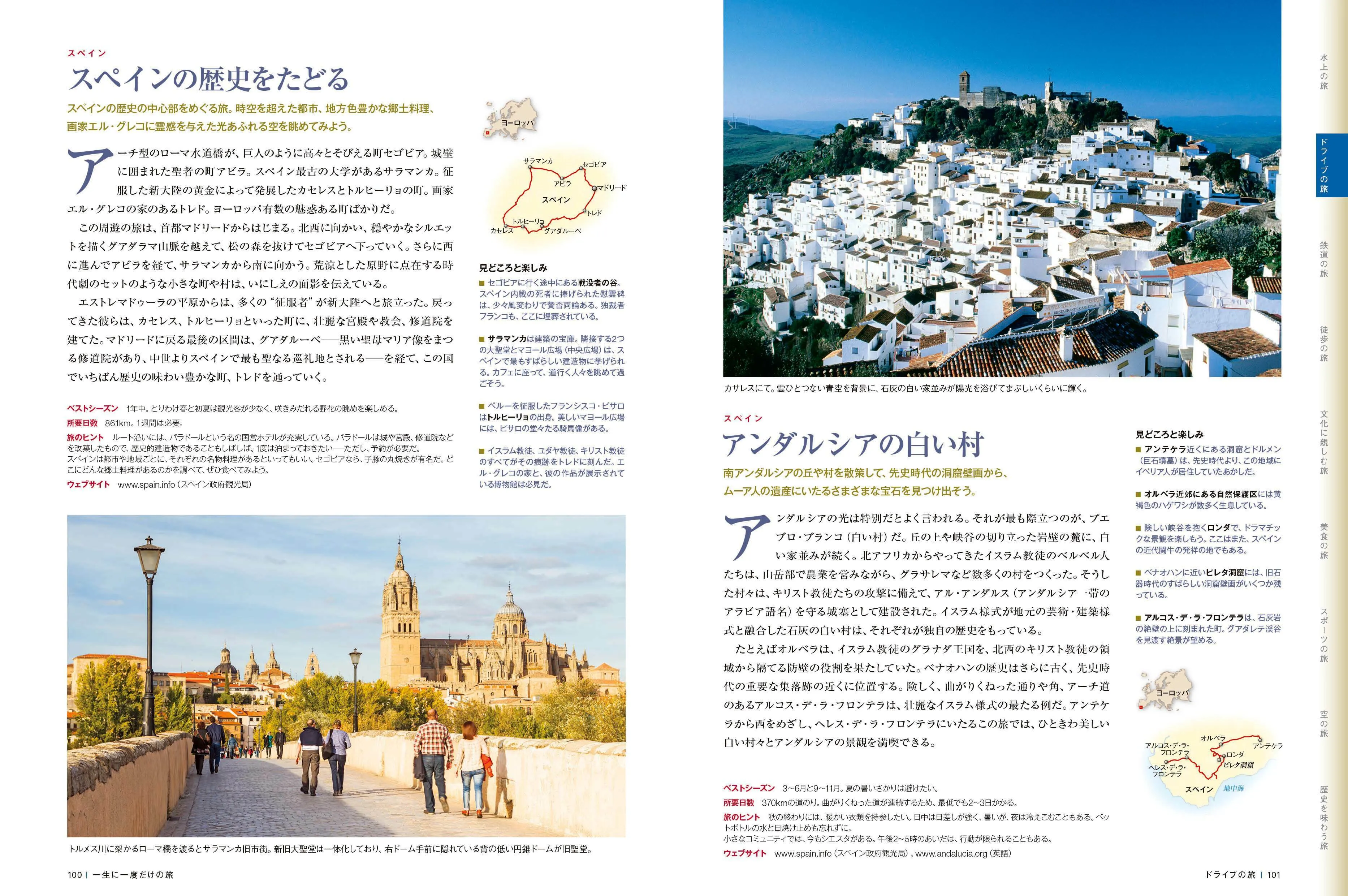「水上の旅」「美食の旅」「文化に親しむ旅」など、9つのシチュエーション別に掲載。美しい写真とともに、旅先での楽しみ方、情報収集のヒント、ベストシーズン、ロケーションマップ、テーマ別の旅先トップ10など、旅に関する情報が満載。
