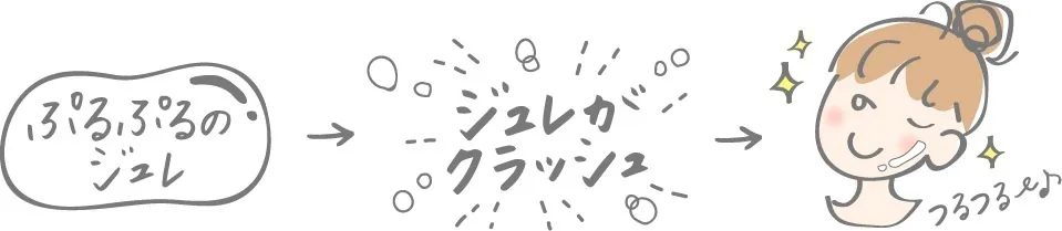 ぷるぷるのジュレが微細にクラッシュし、一瞬でお顔全体に密着。